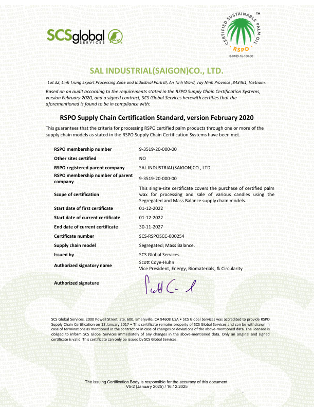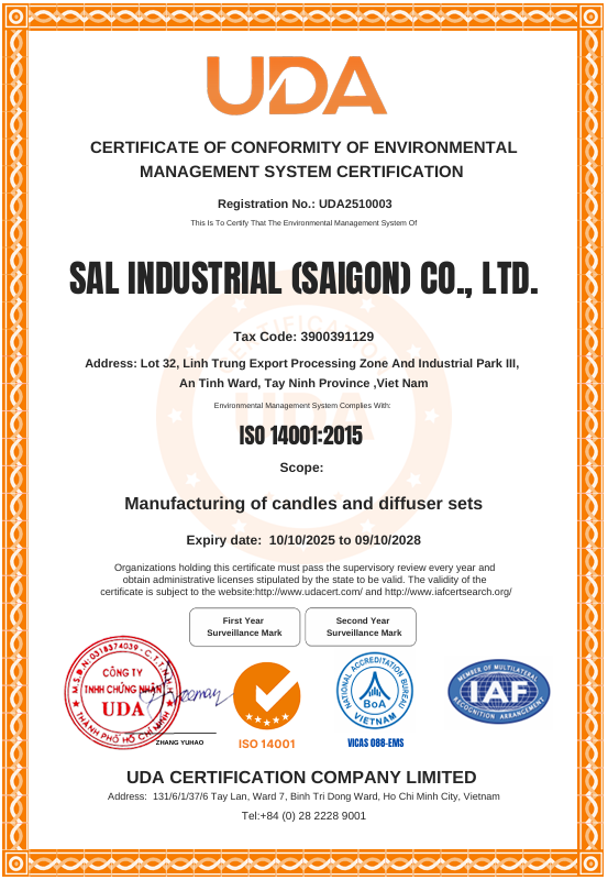 Discover SAL Industrial (Saigon) Co., Ltd - our cost-effective manufacturing facility in Vietnam with nearly 20 years of experience in candle production.