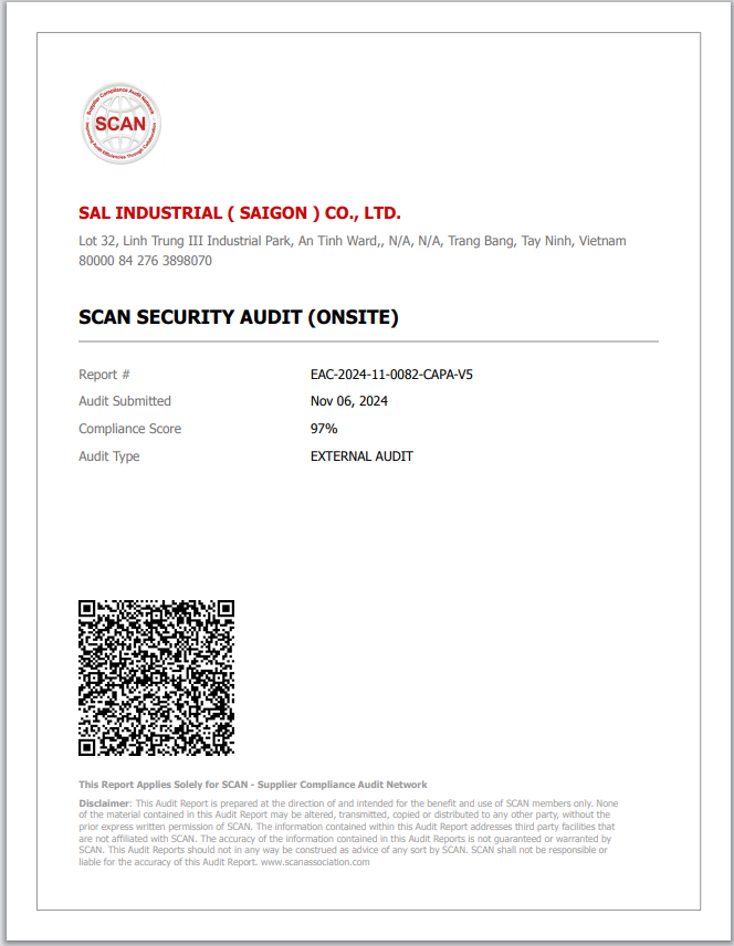 With close attention to quality control, constant care to human rights, Counter Terrorism safety and nature environment, our factory passed multiple factory audits and obtained relevant certificates.